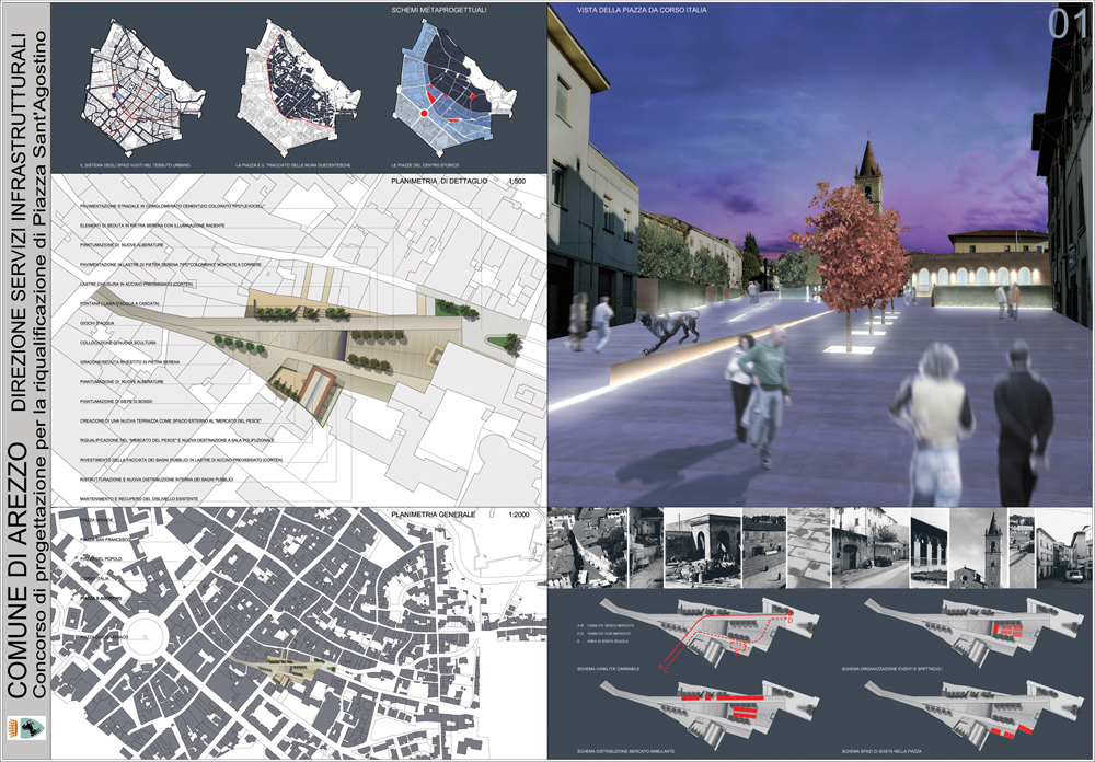Project classified 2th in international competition for new square S. Agostino in Arezzo, Italy